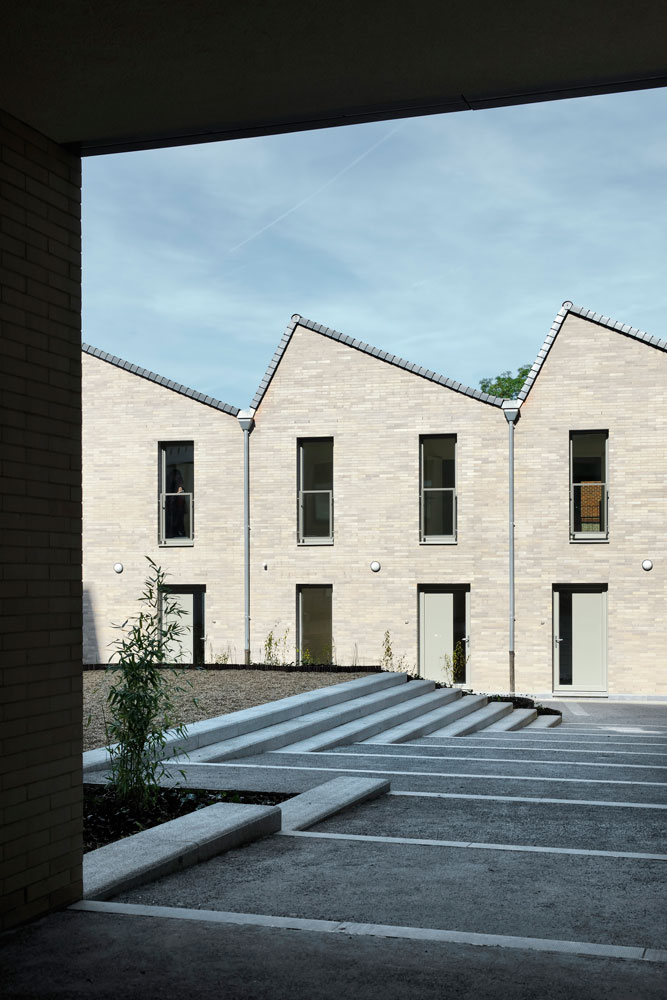 Ce contexte patrimonial exceptionnel fut le point de départ évident de la proposition architecturale. Il a été décidé de garder la logique de l’ensemble existant : l’immeuble et le passage à rue sont conservés. Ce dernier s’ouvre sur un large intérieur d’îlot qui donne de la respiration entre la construction du front de voirie et les trois petits bâtiments contigus en fond de parcelle. Entre les volumes, un confortable jardin commun est à la disposition de tous les résidents.