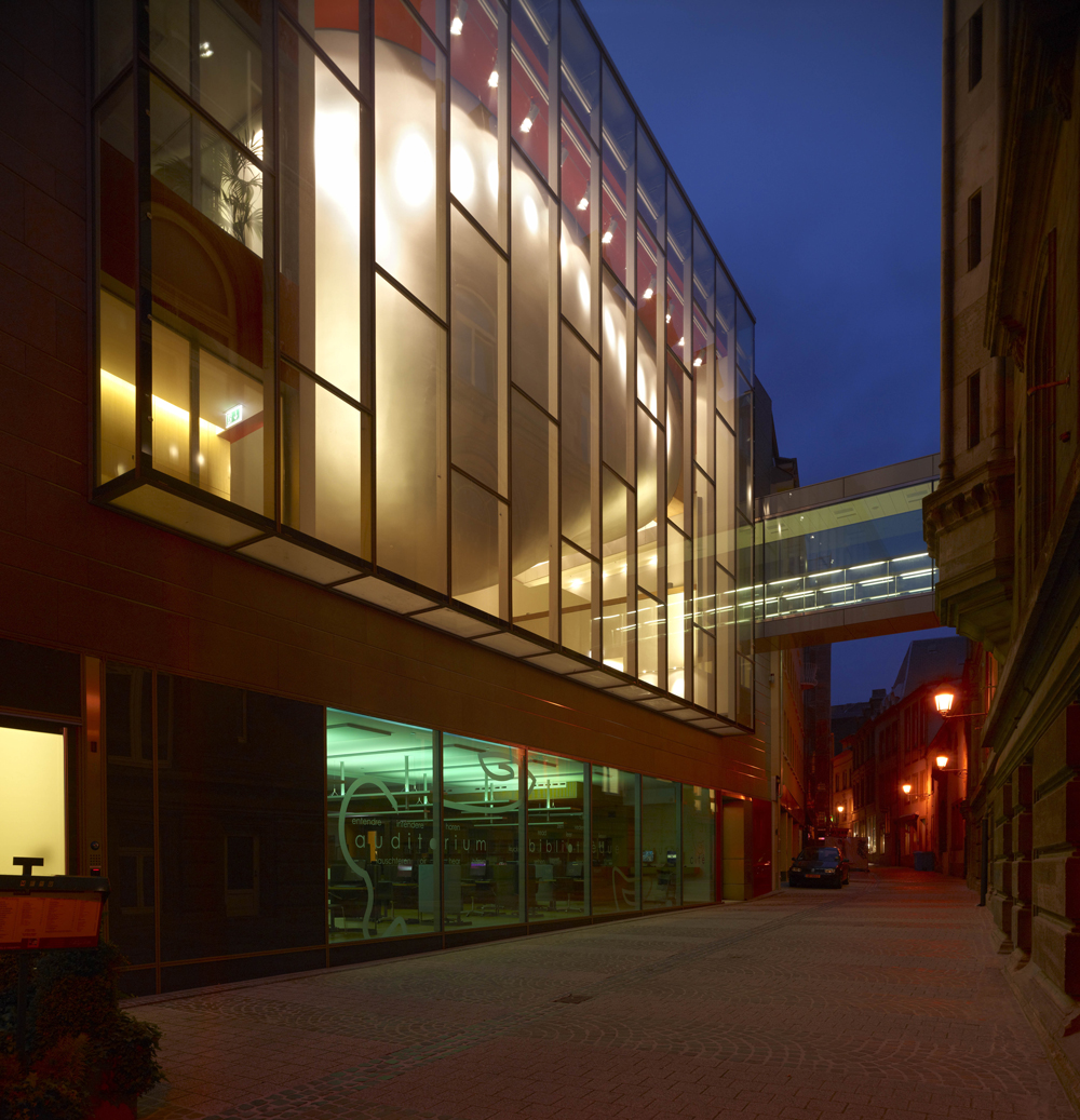 La partie neuve du projet global comporte la bibliothèque municipale la médiathèque, salles de conférence, cybercafé, bureaux et les techniques du Cercle Municipal.