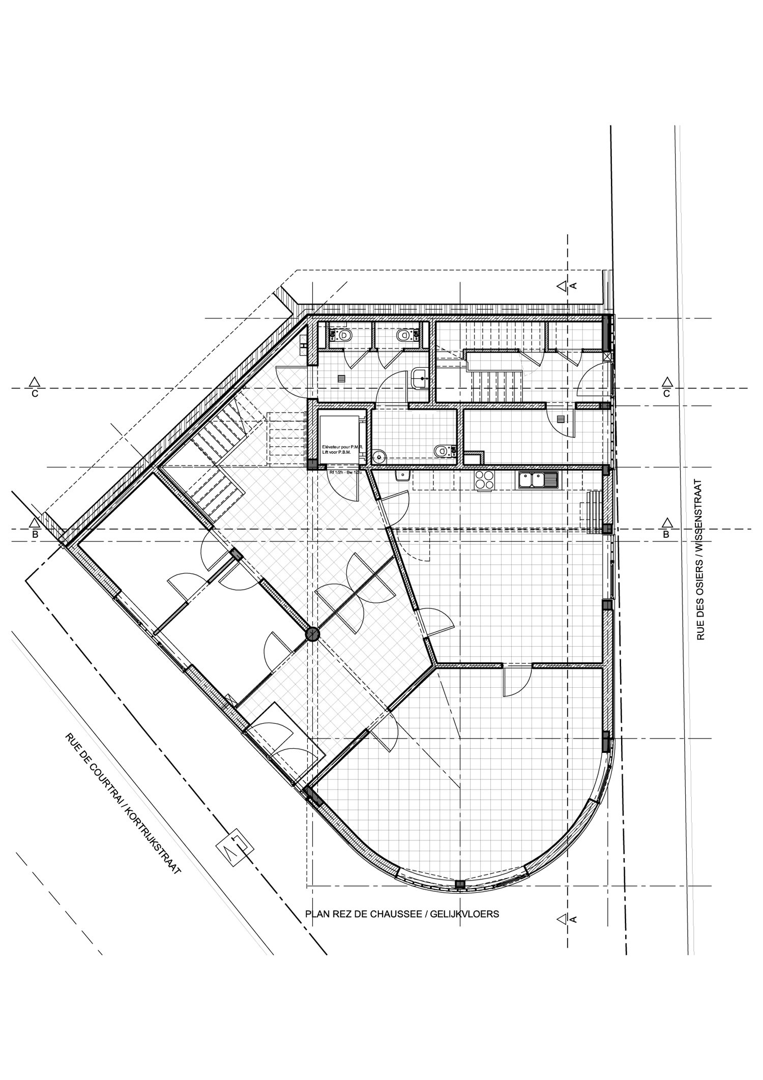 Le nouvel immeuble à l’angle de la rue des Osiers et de la rue de Courtrai est emblématique de la volonté des autorités communales de revisiter le patrimoine local en y adjoignant une dimension sociale. Il regroupe une maison de quartier sur les deux premiers niveaux, et deux logements sociaux sous forme de duplex dans les deux niveaux supérieurs.