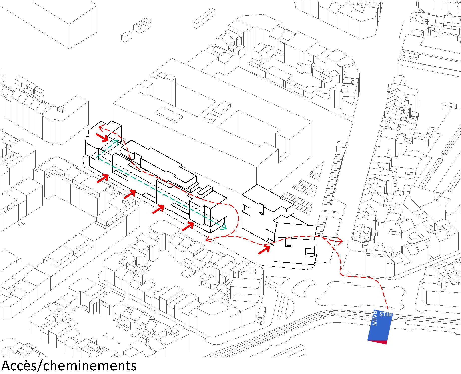 Construction et rénovation de ± 12.000 M² bruts de logements conventionnés et de ± 120 M² bruts de surfaces dédiées au commerce ou à un équipement à Molenbeek-Saint-Jean entre les rues De Koninck, Van Kalck et Charles Malis.