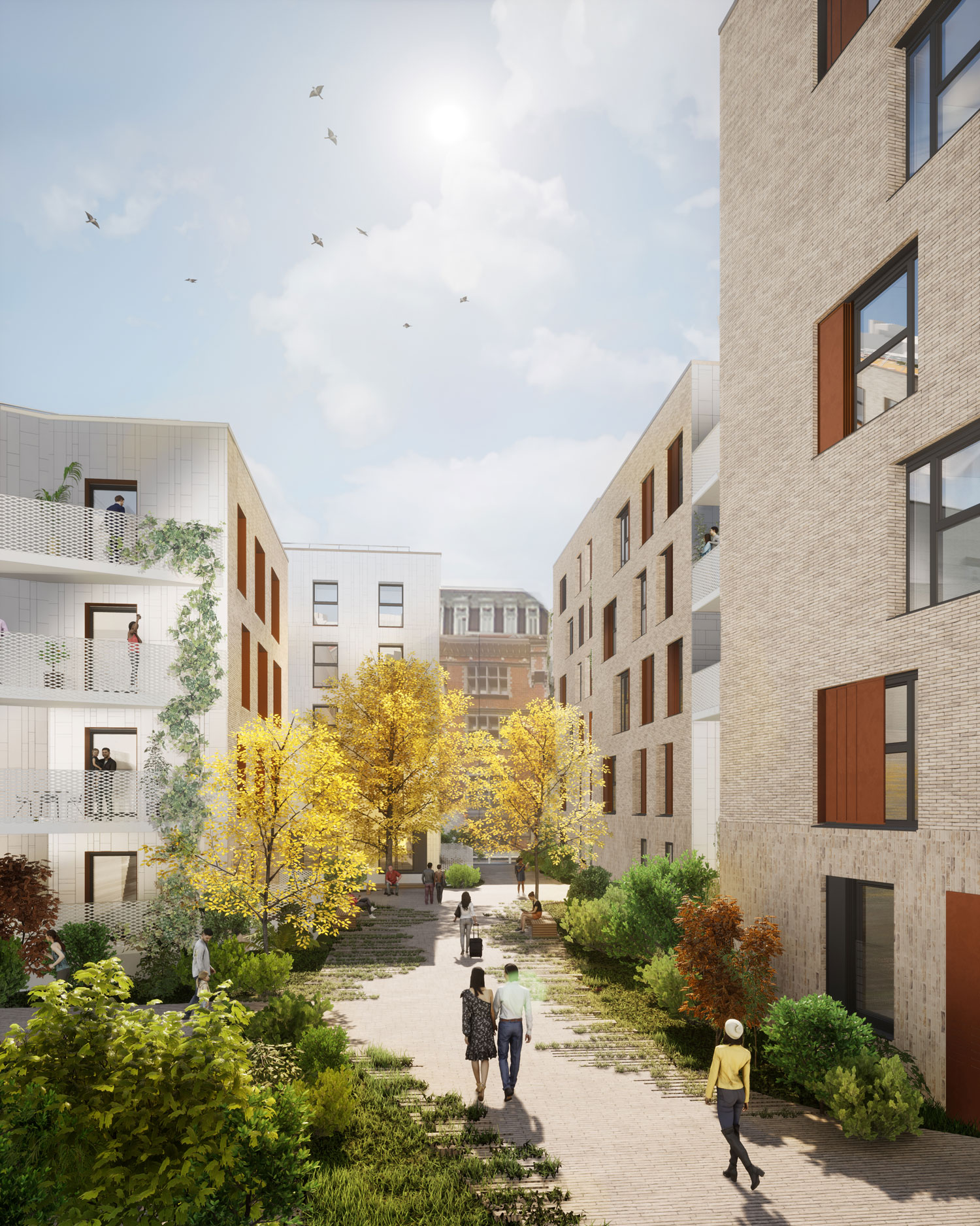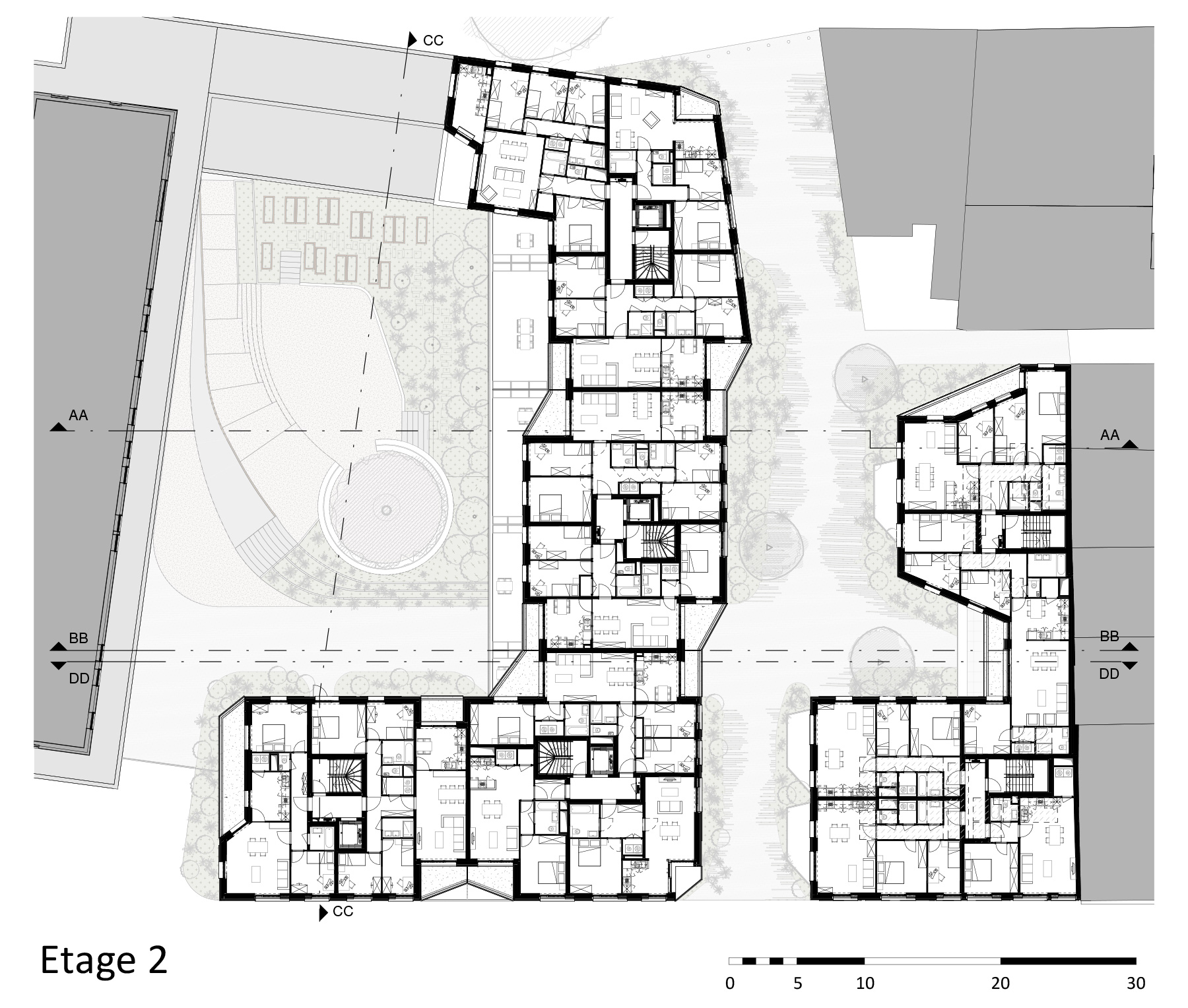 L’ensemble des différentes typologies sont réparties uniformément sur l’ensemble du site et notamment au sein même des circulations afin de favoriser les rencontres et créer du lien social.